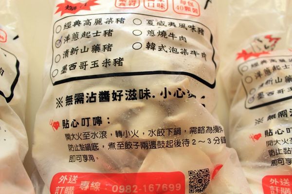 簡單的透明袋前面會把該袋的水餃口味打勾,還會介紹煮法。