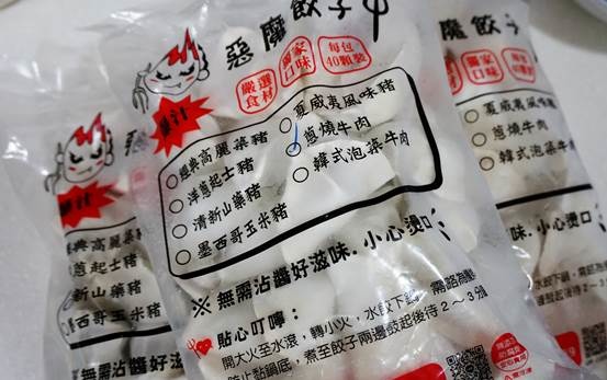 惡魔撒蛋水餃不僅個頭碩大,且口味眾多,有高麗菜豬、起司豬、山藥豬、墨西哥玉米豬、夏威夷豬、蔥燒牛和泡菜牛,除了牛肉口味280元/包外,其餘豬肉款都是200元/包,平均每顆5元。