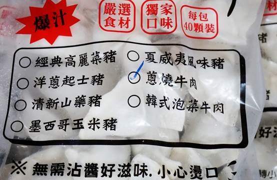 每袋水餃裏頭有40顆,而且每顆重達26g,是King Size級的。