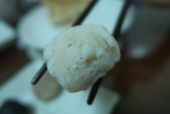 也算是Q彈,但因為前面吃的墨魚丸太搶鏡了,這個花枝丸比起來就遜色一點,