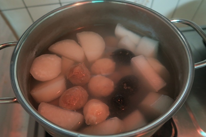 三色丸子湯搭配的主食材是蘿蔔,其實丸子單煮湯也是OK的,但我想說健康一點咩,