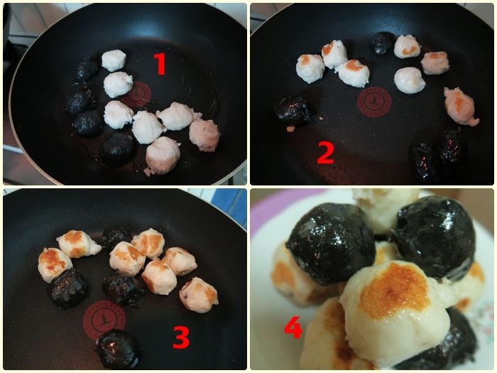 真的只放一點點的油啦,墨魚丸就油得發亮......