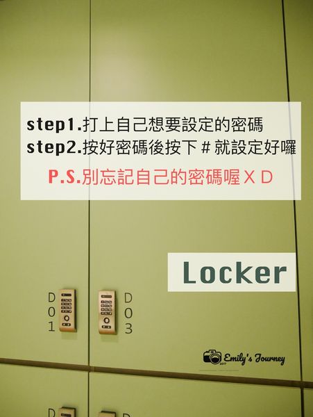 別忘了密碼,不然就會跟我朋友一樣很糗的隔天早上還要去拜託櫃檯人員幫忙開鎖
