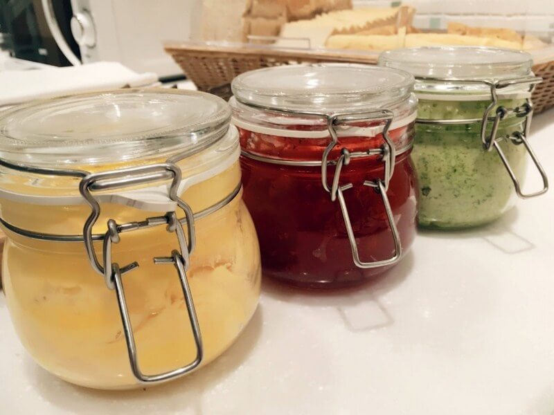 沾醬有果醬、奶油、香蒜醬,土司烤起來也好香呀!