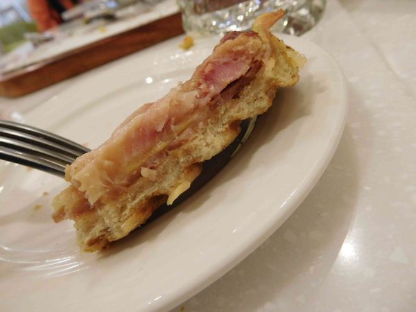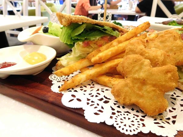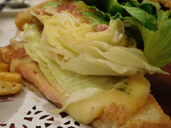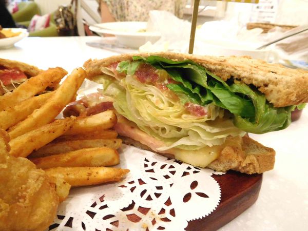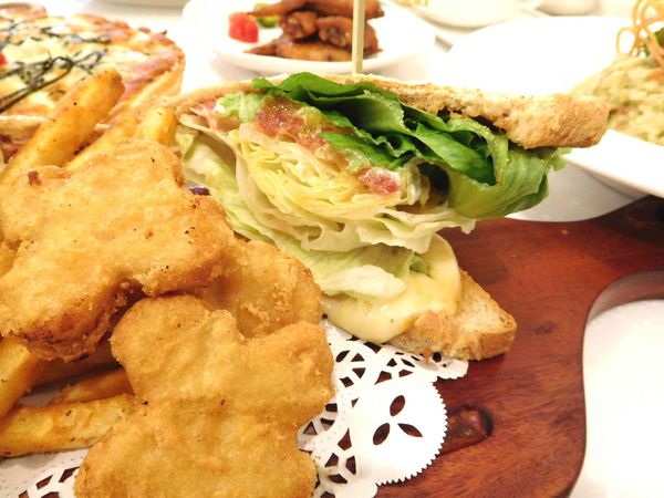 三明治的麵包烤得滿脆 裏頭的生菜爆多的