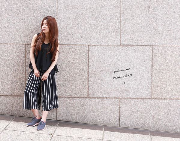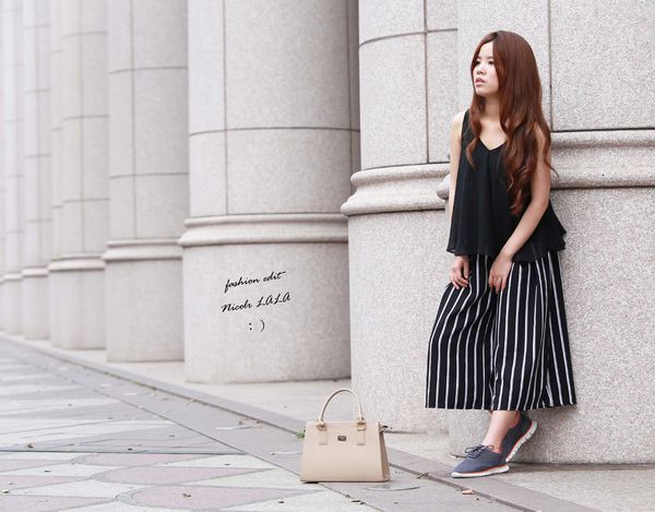 LOOK 2>> 黑色雪紡背心+條紋寬褲