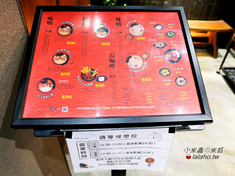 讓人知道這是拉麵店,也可以得知裡面拉麵的種類與價位!
