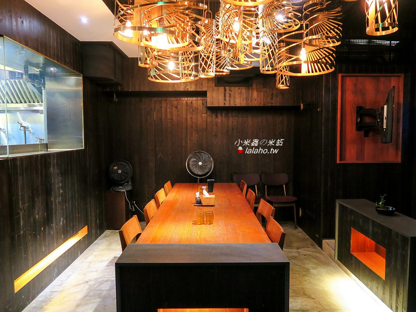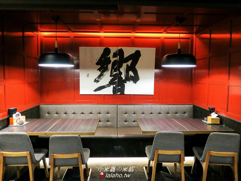 裝潢以黑、金、紅,為主色創造出復古低調奢華感。店裡充滿放射線條,火焰的意象。牆上掛著氣勢磅礴『炎神』兩個字,是來自於日本書法名家本田蒼風。