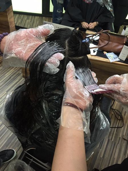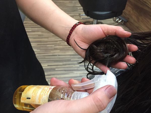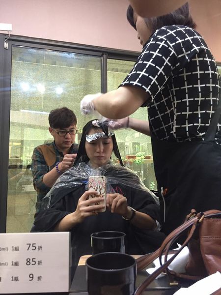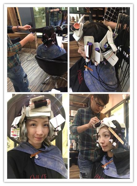 首先,sam先將頭髮先做了簡單的修剪及沖洗,再進行「護髮」動作,緊接著便開始 「燙髮」