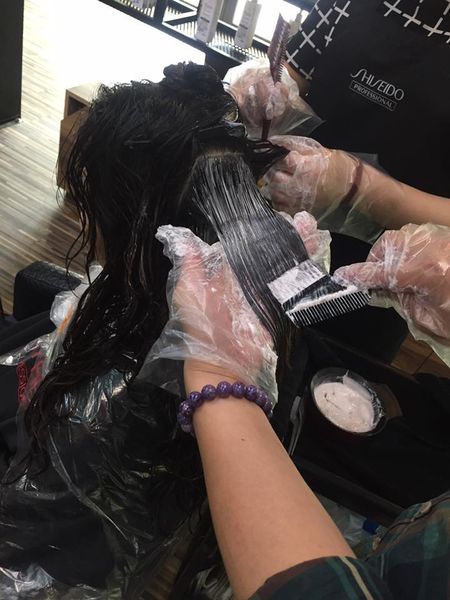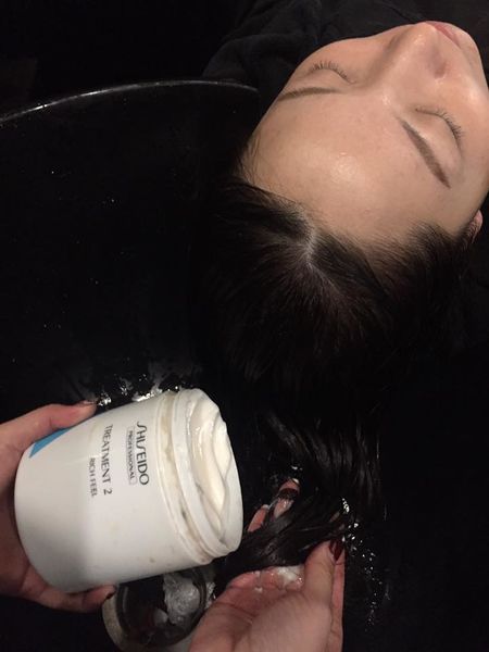 最後的護髮戴塗抹上資生堂的髮品就完成了!!