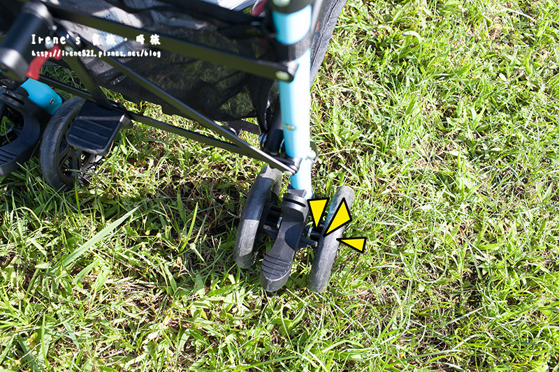 兩個後輪分別都設有腳煞車,可固定推車不亂動;