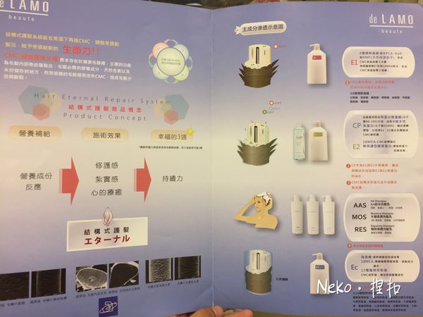 這次的護髮是結構式護髮,護髮產品很特別,三劑&噴霧+洗髮精,主要由小分子的第一、二劑開始營養補給,加上噴霧加強之後,以專用的洗髮精去除多餘護髮素再上第三劑把所有的護髮元素通通包起來~味道很溫和好聞,沒有過香的香料味,完成後護髮效果平均可達三周