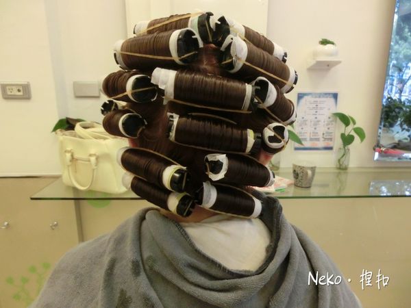 第一次看到自己的頭全上捲子~莫名的有喜感,這時Chang幾度提醒雖然看起來整頭都捲,但是會有捲度的是他上藥水的部位,而且一開始看會很捲,等洗完頭就不會那麼捲~整體髮型大約在一兩個禮拜後就會非常自然了,貼心地解釋讓人十分安心~這樣就能理解為什麼常常燙完覺得跟自己期待的有落差,先做心理準備XD