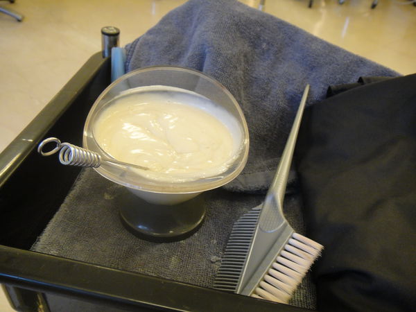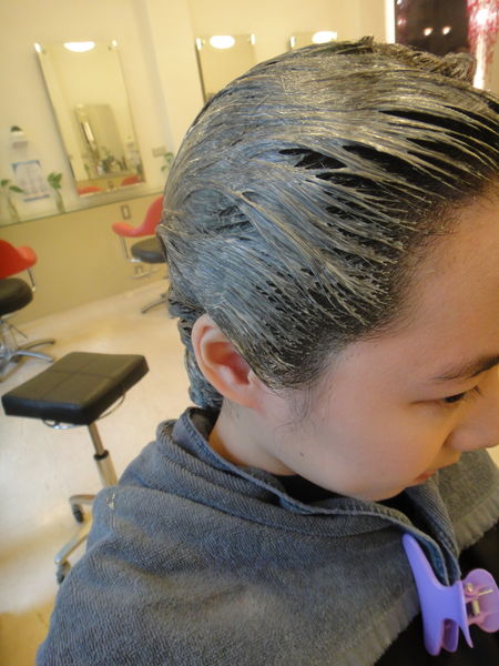 修剪一下頭髮後,就開始染髮啦~