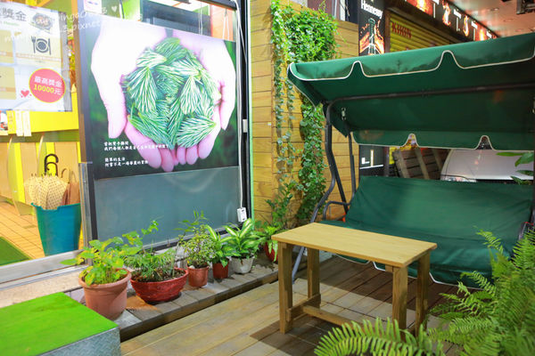 這間餐廳意外的很清新,門外竟然還有搖搖椅的庭院小造景。