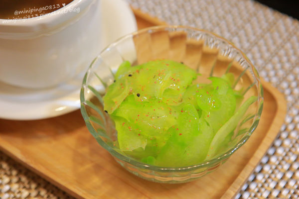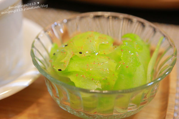 一點都不苦的苦瓜,切得薄薄脆脆,晶瑩剔透的翡翠綠,冰涼爽口