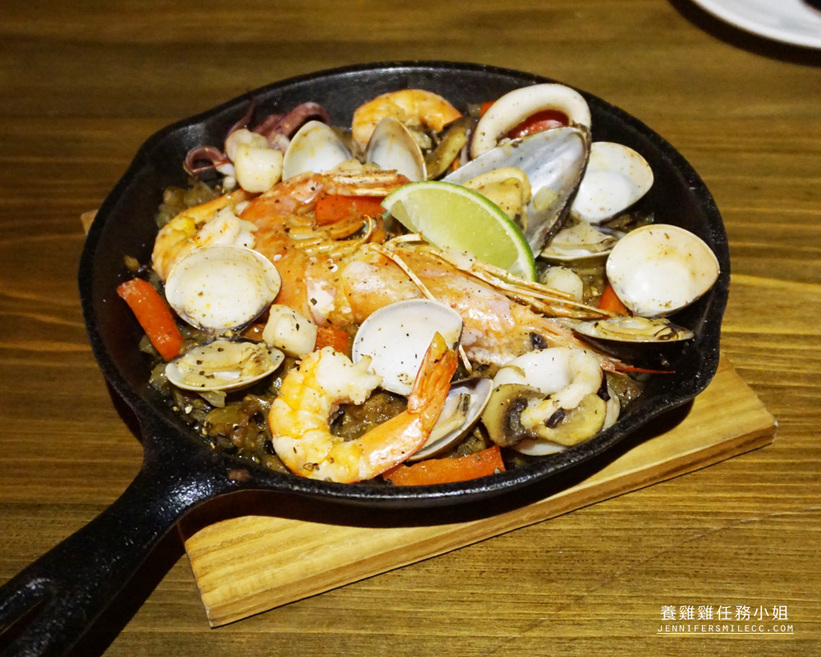 接著我們點了道西班牙海鮮燉飯,滿滿的海鮮完全不誇張,蝦子還超大隻的,一上桌我們就非常驚喜。The Scent 餐酒館的燉飯用的米比較軟,但是非常的入味,特別這道海鮮燉飯,米粒吸了飽飽的海洋鮮甜滋味,每一顆米飯都沒有錯過!把新鮮檸檬擠上去海鮮的鮮美又更顯著,雖然平常我比較喜歡偏米粒心比較硬的燉飯,可是這道米粒比較軟的我也滿喜歡的。