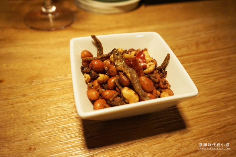 這盤下酒菜是The Scent 餐酒館招待,老闆說是他們自己炒的,很特別,第一次在小酒館吃到這樣的小菜,其他地方可能都是小豆子或是餅乾乾糧那種。如果喜歡喝一杯的朋友來這邊有福了,這盤小菜真的超涮嘴的!