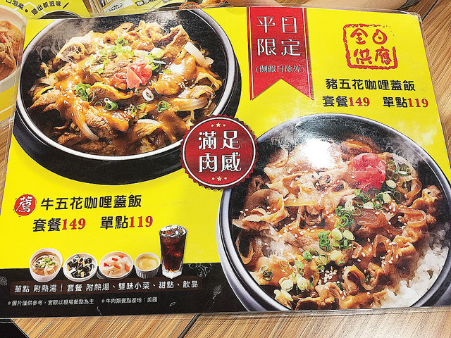 平日限定的蓋飯和冠軍商品雙主餐的特惠