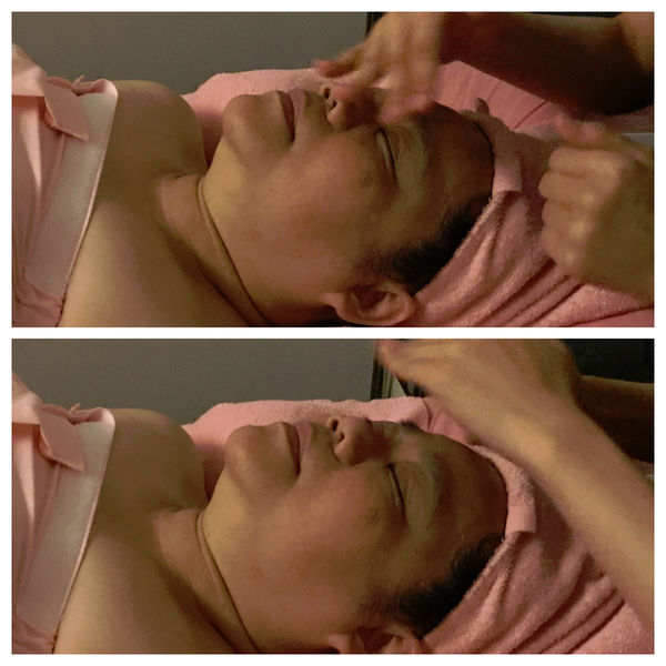 按摩全臉,包含額頭、眼窩、耳朵,輕輕釋放壓力