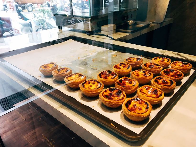 Exiting from Shipai MRT station and walk toward “Veterans General Hospital, you can arrive the shop. Inside the store, it has “Ruínas da Antiga Catedral de São Paulo” wall paper. There are also high chairs for the customers to rest and chat. There are trays of warm egg tarts waiting for the customers for quick pick-up.