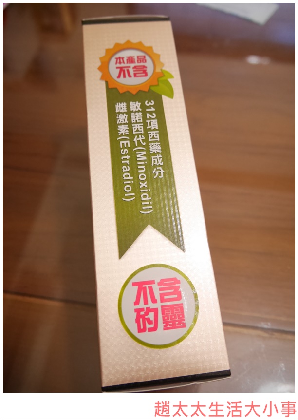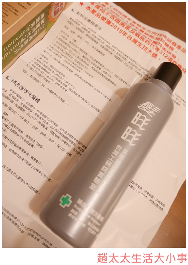 拿到這瓶主要是要讓趙先生試用,畢竟雖然我本身頭髮濃密,但所謂掉髮的恐懼,我也有。在我自己來講,第一次發現到頭髮整把、整把掉的驚恐感覺,就是在產後那陣子,那是我第一次親身感受到狂掉頭髮的可怕,內心十分不安,深怕就會這樣一直持續下去,不過,還好產後掉髮的狀況只是暫時的