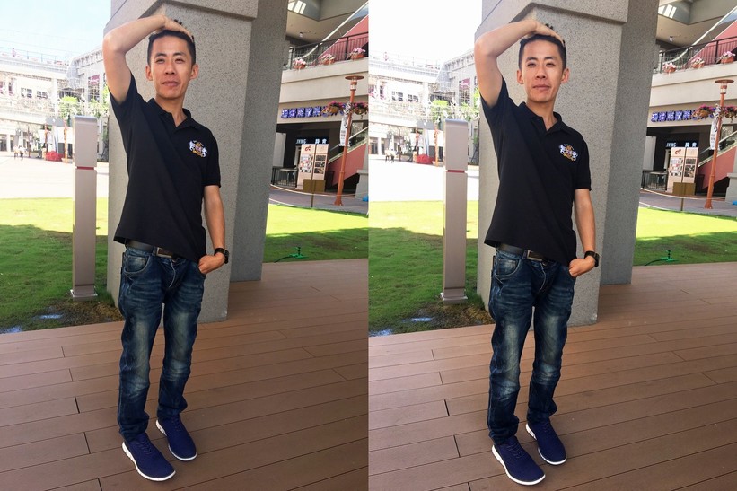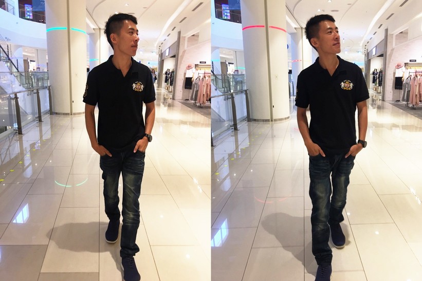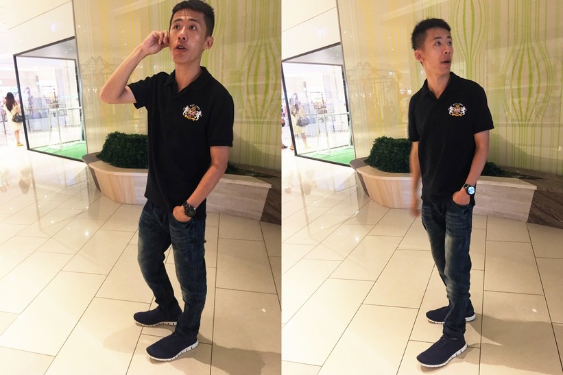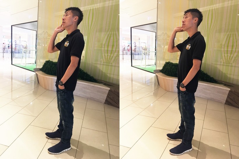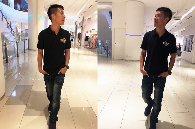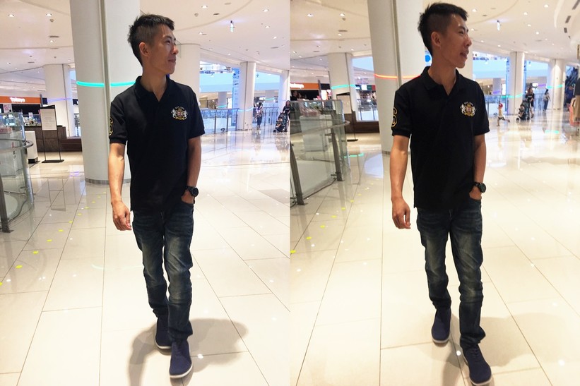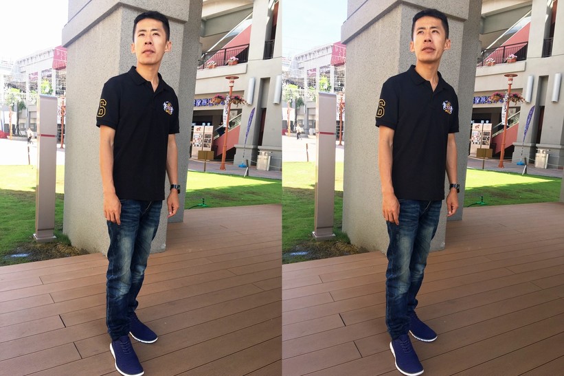 戶外看起來顏色比較偏向實際顏色,很飽和,搭配POLO衫很合宜,此外這樣的設計很適合給青壯年穿~ 看著他穿,我也想要一雙來搭配夏天阿~
