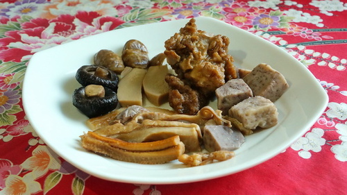 所以我特別把料挑出來給大家看,真的就像在餐廳裡吃的一樣,用料毫不手軟。真的吃到芋頭,排骨酥,香菇,豬肚,蝦米,魷魚,魚皮,杏鮑菇。