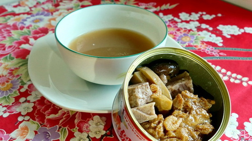 假日的下午大家都在喝下午茶,因為我的胃腸不好,所以咖啡甜食之類的我是不太碰的,突然靈機一閃,誰說下午茶不能吃鹹的,就來喝雞湯與佛跳牆吧。