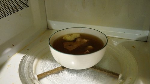不過我還是覺得用微波爐加熱比較安全方便,把食材倒入碗中