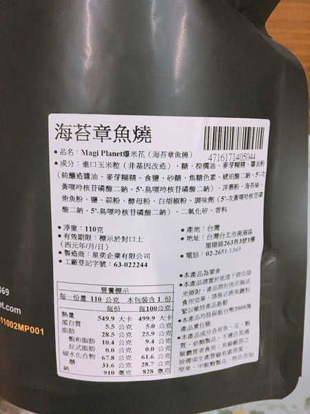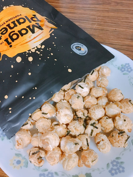 喜歡吃鹹爆米花的人,可以嚐嚐海苔章魚燒口味的,有淡淡的海苔香氣跟海鮮的味道,章魚燒口味也深受我家小孩喜愛