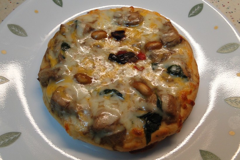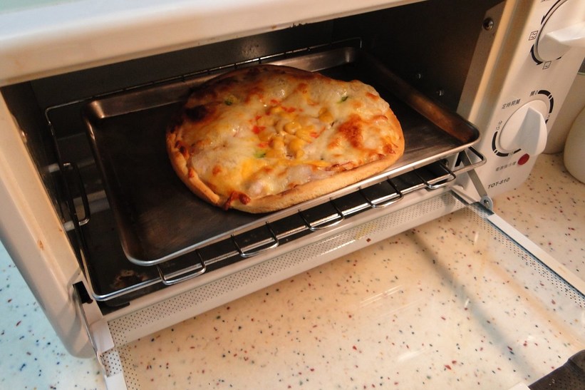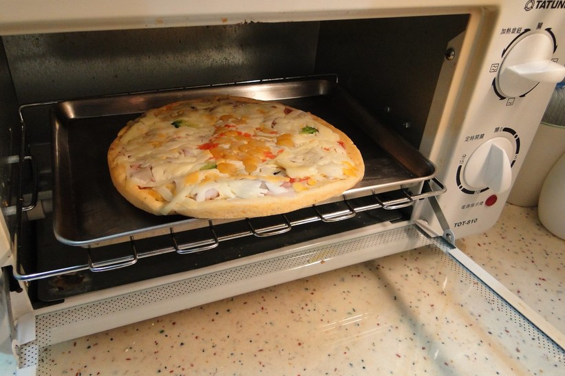 接著將披薩放入預熱過的烤箱烤5分鐘即可,口袋披薩的好處,就是不用怕小烤箱會放不下,如此精美的大小深深擄獲居家型男的芳心。