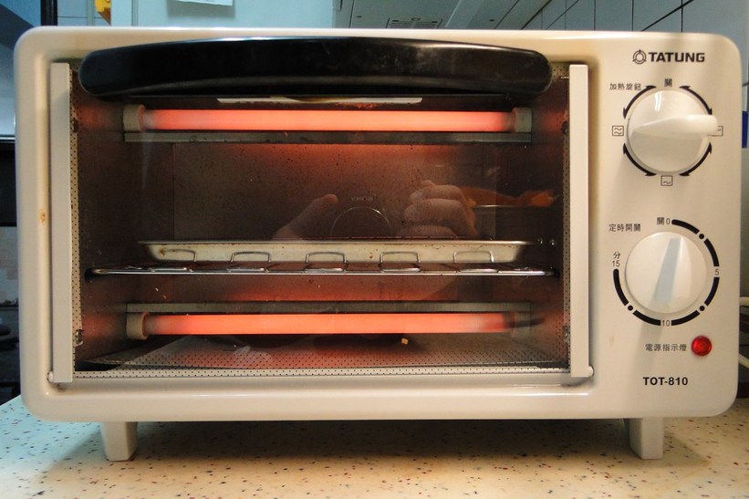 首先將烤箱的上下火都打開,預熱1~3分鐘即可。