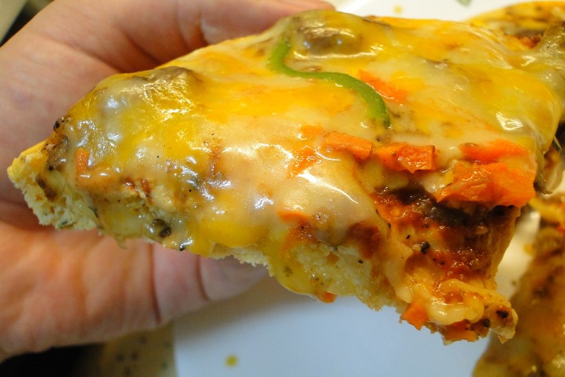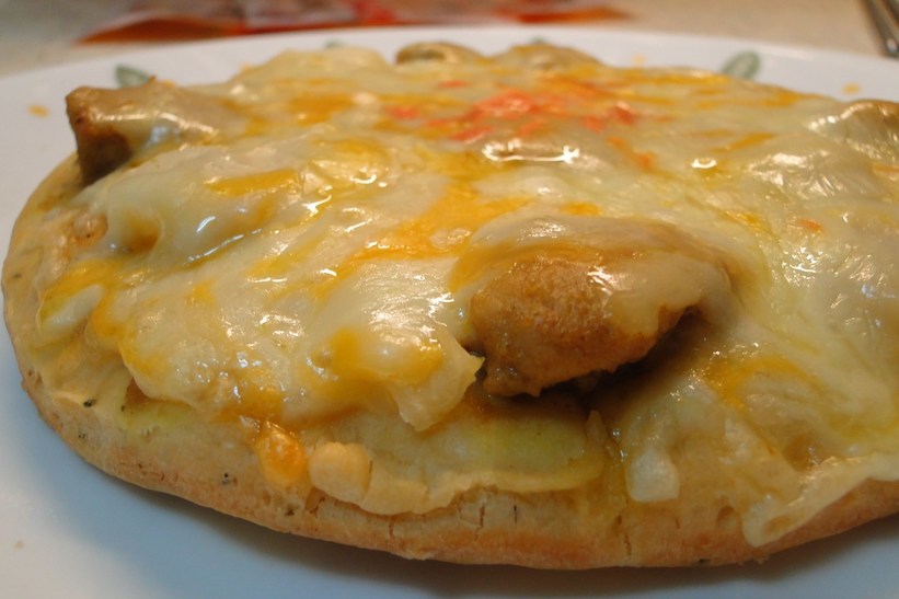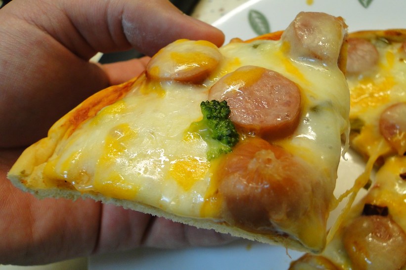 烤過以後的披薩咖哩味道很香,第一口吃下去的感覺很像咖哩餃子,鬆軟的薯泥搭配微甜調味的咖哩雞肉,再加上綿密的起司,吃起來整個超棒的,馬上加入下次團購的必選口味清單!