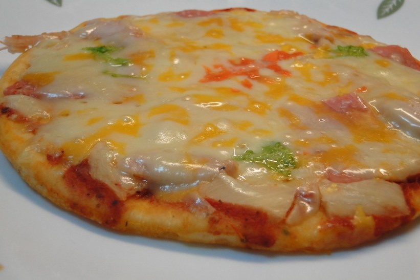 吃的到豬肉與雞肉兩種不同風味火腿的豪華夏威夷,薄皮的部分考得很酥脆,火腿不會過鹹,鳳梨吃起來酸酸酸甜甜,口感頗佳。