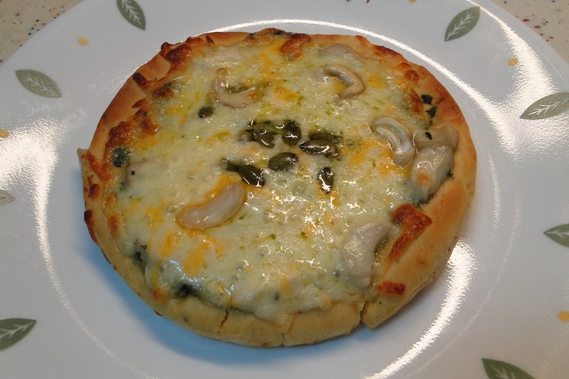 九層塔的香氣很棒,中和了起司的濃郁感,撒在上面的核果不會因為再加熱而變得太軟,整體搭配起來很不錯,且這個口味是只有加蒜頭的伍辛素唷!