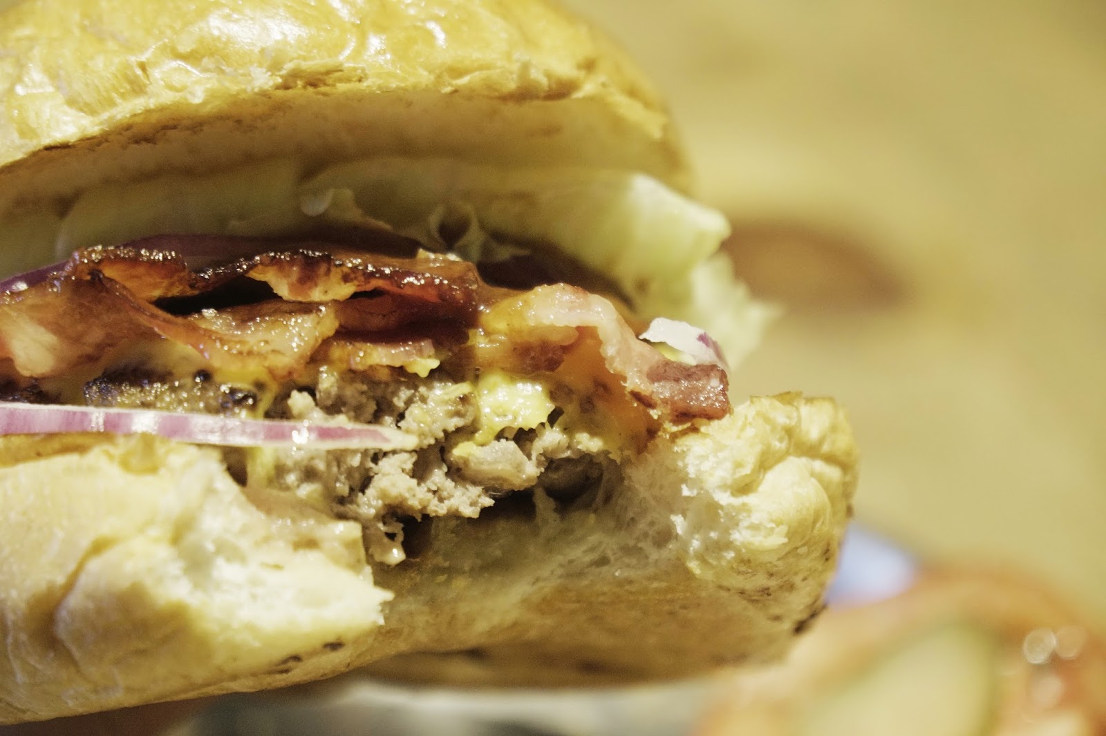我的培根漢堡,我要很真心的說真的很好吃!麵包是我喜歡的那種,有點像Shake shack的麵包作法很精緻,但更大一些,外面脆脆的但裡面非常軟。