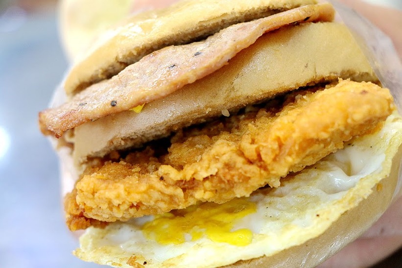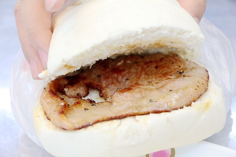 黑糖饅頭包著豬排 超厚一塊的勁辣雞腿排 下層還夾了荷包蛋