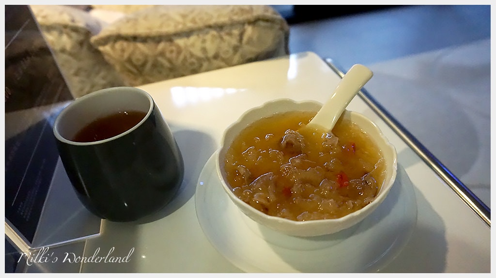 夕陽西下 我坐在外面的休息區享用著冰糖銀耳露,不甜不膩吃起來好開心