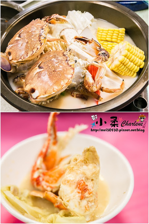 兩隻牛蹄蟹搭配上金針菇、杏鮑菇、蟹肉棒、高麗菜、玉米...等