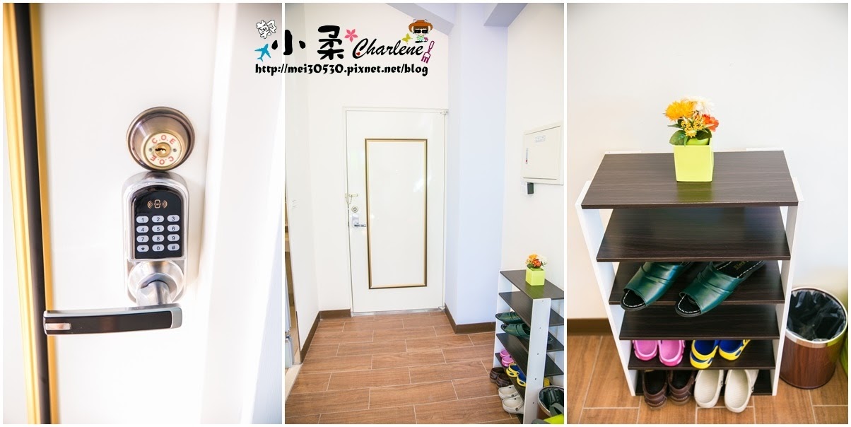 住宿房間使用磁卡進出,裡面還有鞋櫃、拖鞋