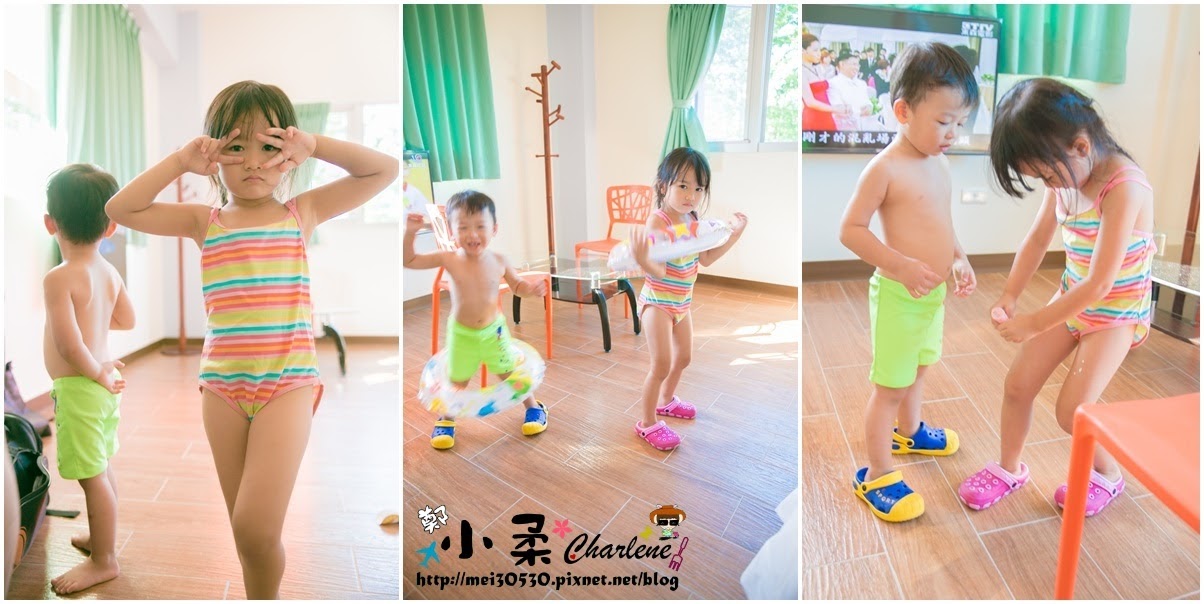 行李放好之後,Q式姊弟迫不及待的換上泳衣