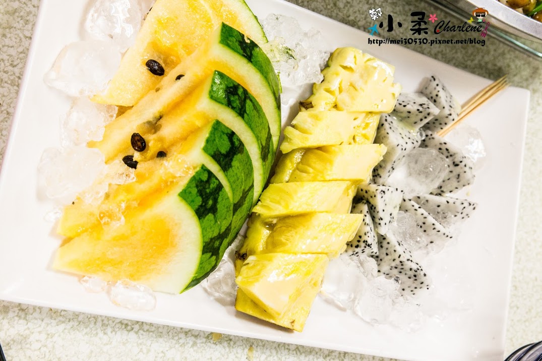 飯後水果:小玉西瓜、鳳梨、火龍果