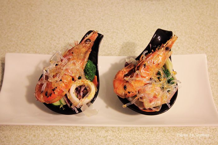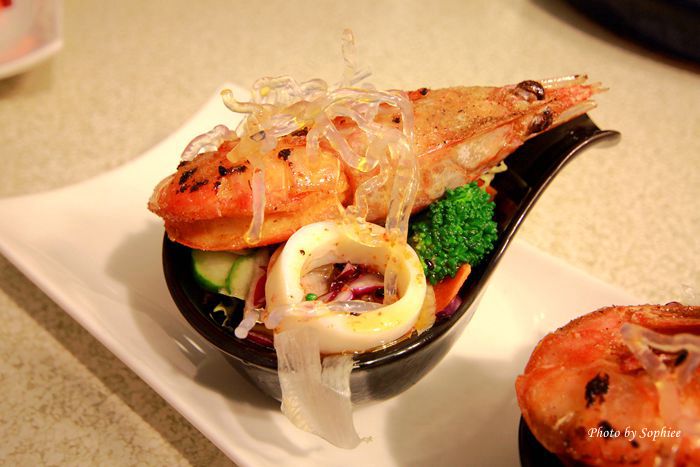 【甜蝦沙拉】上頭這隻大蝦,是鹽酥蝦喔!