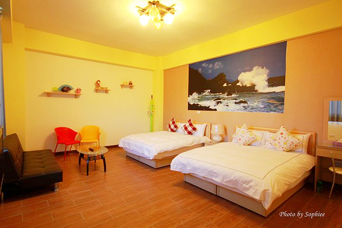 房間真的很大,明亮又乾淨,第一次在宜蘭住到房間裡還有沙發區的民宿~