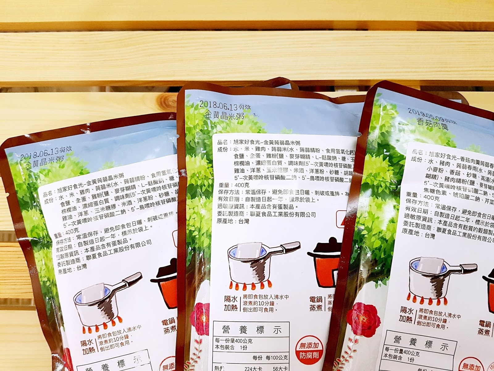 即食包採鋁箔積層袋密封包裝,可阻隔空氣以及細菌入侵,過程中還經過高溫高壓處理,不必加入防腐劑就能在室溫下長期保存,加熱即可食用,加熱方式有三種-隔水加熱 10 分鐘、電鍋蒸煮 15 分鐘、微波加熱 3 分鐘,真的好方便。