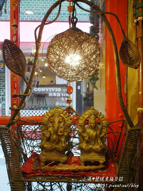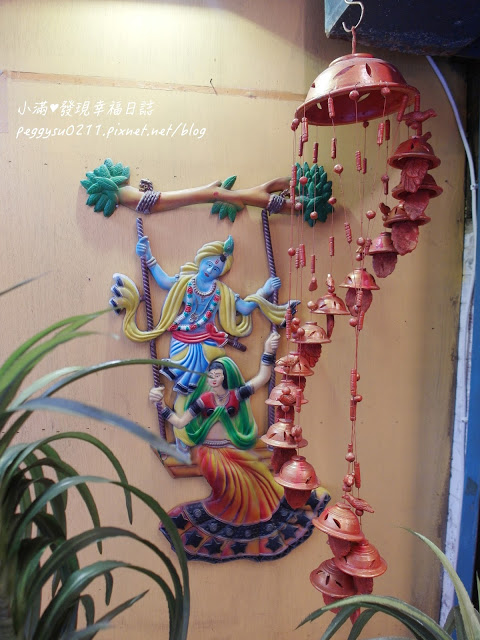 門口充滿印度風的擺設,藍色在跳舞的雕像感覺像是印度神話中的「濕婆神」