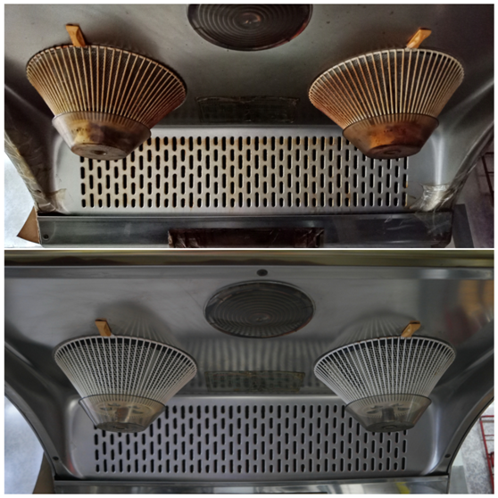 可是清理完效果不好,因為有些油漬夾在包膜和抽油煙機中間,小in心想...既然要清就清乾淨吧!!! 冒著可能挨罵的風險請陳先生把包膜拆下來,他拆完包膜後又再清了一次外殼,覺得他還挺尊重客人的意見