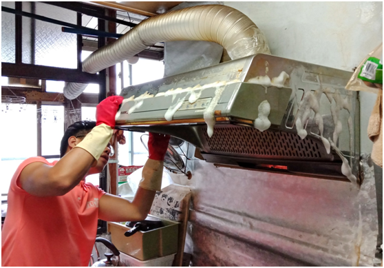 接下來要靠陳先生把廚房變整潔了!首先清理抽油煙機。