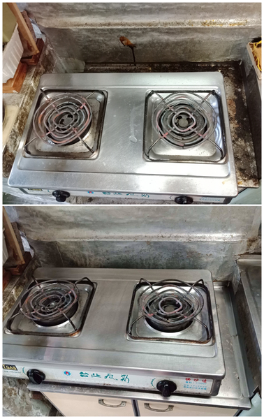瓦斯爐表面還算整潔,因為平常有在下廚,油垢髒汙積久了看不下去還是會清一下,但是瓦斯爐和洗手台與牆壁中間的縫隙就完全無視了XDD 煎東西時油都會噴到那邊,有時候還會有食物掉在那邊,但我們都不管它… 因為太髒了,我們也都不想面對(偷懶又逃避的一家子:P)